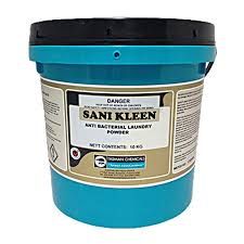 Tasman Chemicals Sani Kleen is a free flowing white powder with a blend of surfactants, sequesterants and oxygen donating bleaching agents. It has a powerful sanitizing action.Antibacterial Laundry Powder