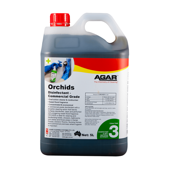 Agar ORCHIDS is a disinfectant and detergent designed to sanitise, clean, and perfume all hard surfaces where hygiene is essential.