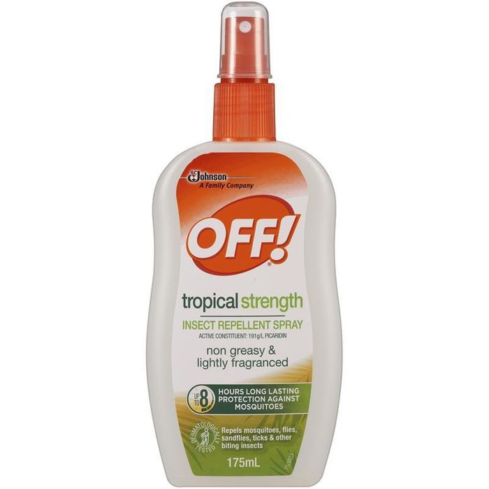 Off! Tropical Strength Insect Repellent spray has up to 8 hours long lasting protection against mosquitoes. Repel Mosquitoes, flies, sandflies, ticks & other biting insects.