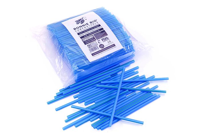 BONNIE BIO COMPOSTABLE COCKTAIL STRAWS offer a sustainable choice for your drinks. Made from corn starch, these blue, unwrapped 5mm cocktail straws come in packs of 250 and are internationally certified compostable. Limited Stock Only
