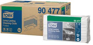 Tork Prem Spec Sensclean Fold are long-lasting cleaning cloths, provided in a folded white 1-ply format, with 100 cloths per pack and 5 packs per carton (W4 system). These cloths are designed for efficient and durable cleaning tasks in various environments