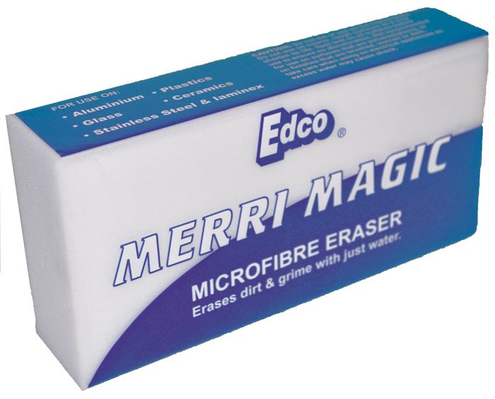 The Edco Merri Magic Eraser effortlessly eliminates dirt and grime using only water, making it perfect for spot cleaning throughout your home or workspace. For targeted cleaning, simply cut the eraser into smaller blocks. It effectively removes marks from various surfaces, including walls, doors, and carpets. This versatile eraser measures W180 x D90 x H40mm.