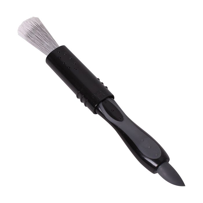 The Turtle Wax All-in-One Detailer is a versatile detailing tool designed to simplify the cleaning process. Its soft feather tip bristles effectively remove dirt and dust, while the fine point tip allows for precise removal of excess wax from crevices, door jams, and other hard-to-reach areas.