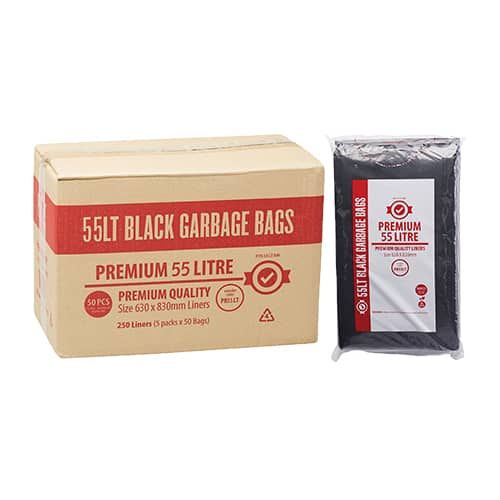 AUSTAR 55L PREMIUM BLACK GARBAGE BIN LINER BAGS