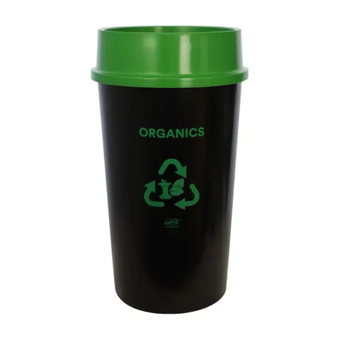 This robust and durable 60-liter bin kit is ideal for efficient waste management. Designed to accommodate standard 72-liter garbage bags, it features color-coded lids for quick identification and a swing-top lid that's easily removable for convenience. Crafted from 98% recycled plastic, this eco-friendly bin measures 73 centimeters in height with a 42-centimeter diameter.