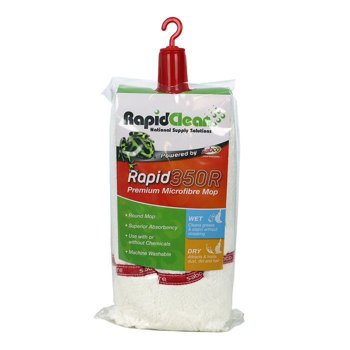 Elevate your cleaning experience with the RapidClean 350G Premium Microfiber Round Mop. Crafted from high-quality microfiber, this mop delivers exceptional absorbency and cleaning power. Its round shape is perfect for use with press wringers and prevents tangling, making it easy to maneuver. With machine washability for convenient care, this durable mop is built to last. Available in blue, green, and red to help prevent cross-contamination, the RapidClean 350G is the ideal choice for a cleaner, healthier home.