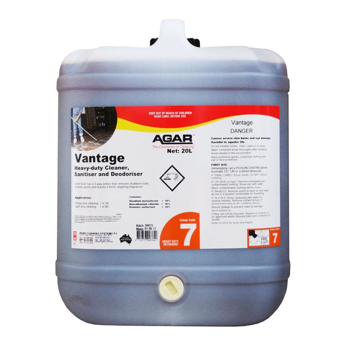 - AGAR VANTAGE HEAVY DUTY CLEANER SANITISER & DEODORISER 20L