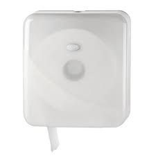 The Royal Touch Single Jumbo White Pearl Dispenser is designed for efficient and hygienic dispensing of jumbo toilet paper rolls. Its sleek white pearl finish offers a clean and modern aesthetic, making it suitable for various commercial or public restroom environments. This dispenser helps reduce maintenance needs by accommodating large rolls, ensuring a consistent supply of paper.