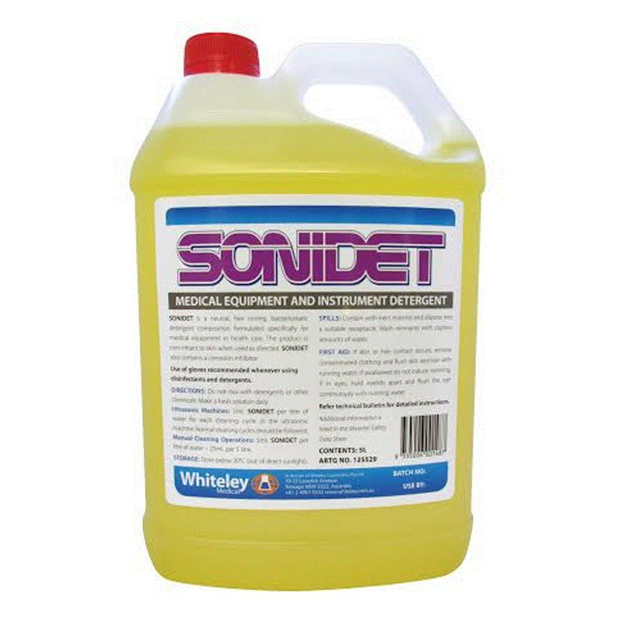 Sonidet by Whiteley is a highly active NEUTRAL liquid detergent specifically designed for both machine and manual cleaning operations in the medical field. Sonidet® is odourless, non-staining and is a safe detergent