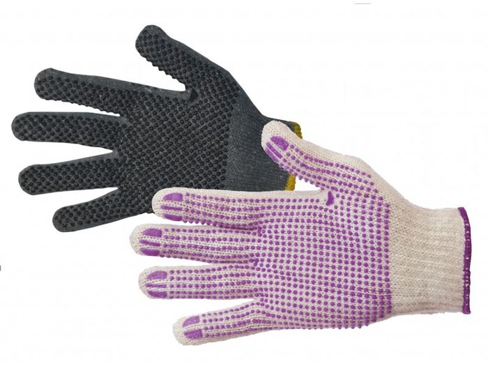 POLY D GREY POLY COTTON GLOVES WITH PVC DOTS PER PAIR